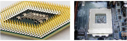 CPU는 컴퓨터의 마더보드의 CPU소켓에 부착된 핀을 통해 컴퓨터의 나머지 부분에 연결됩니다.