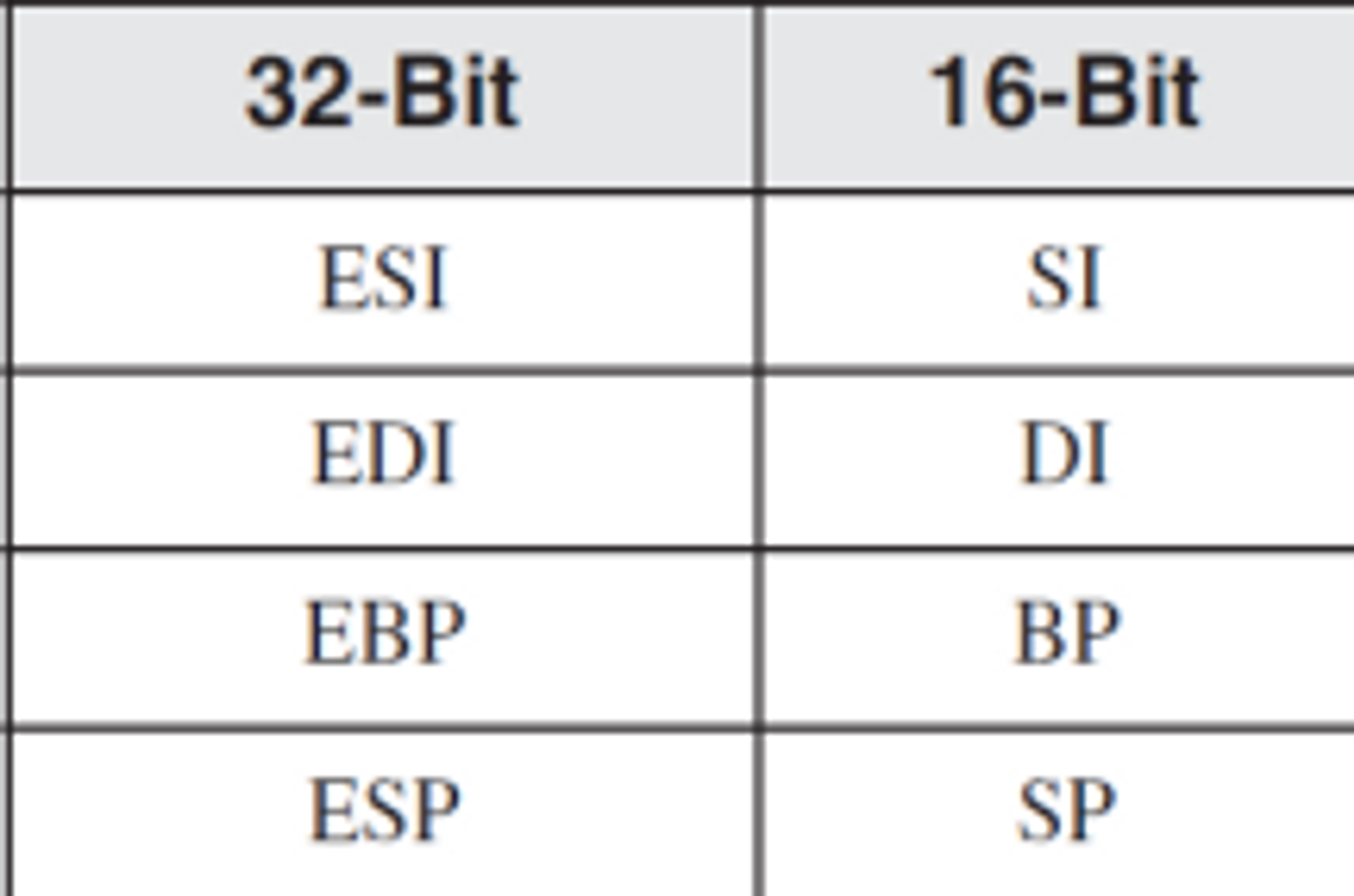 16비트에 없다가 32비트에서 추가된 레지스터 표