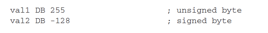 - int타입에 대해서는 뒤에 나오는 녀석이 정수 상수(리터럴)이거나, 정수의 표현(BYTE또는 WORD) 이어야 한다.