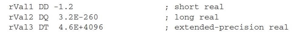 - REAL10 은 10바이트의 확장 정밀도 값을 정의한다.
