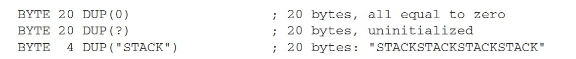 - 0의 값을 가지는 BYTE를 20개 연달아서 만들겠다는 의미이다.