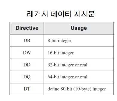 - 다만 과거 16비트에서는 2글자짜리 지시어를 사용했는데 그것을 레거시 지시어라고 부른다.