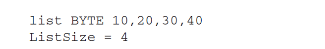 일반적으로 배열을 어셈블리어에서는 다음과 같이 사용이된다.