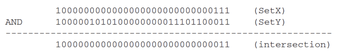 - AND 명령은 두 집합의 교집합을 나타내는 비트 벡터를 생성합니다.