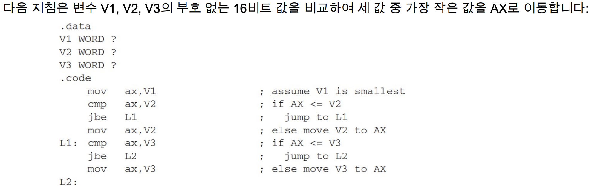 - 조건부 점프 명령은 조건이 참일 때 대상 레이블로 분기한다.