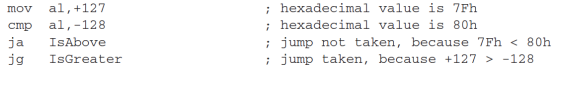 - 부호화된 피연산자의 비교에 기반한 점프 Jumps based on comparisons of signed operands