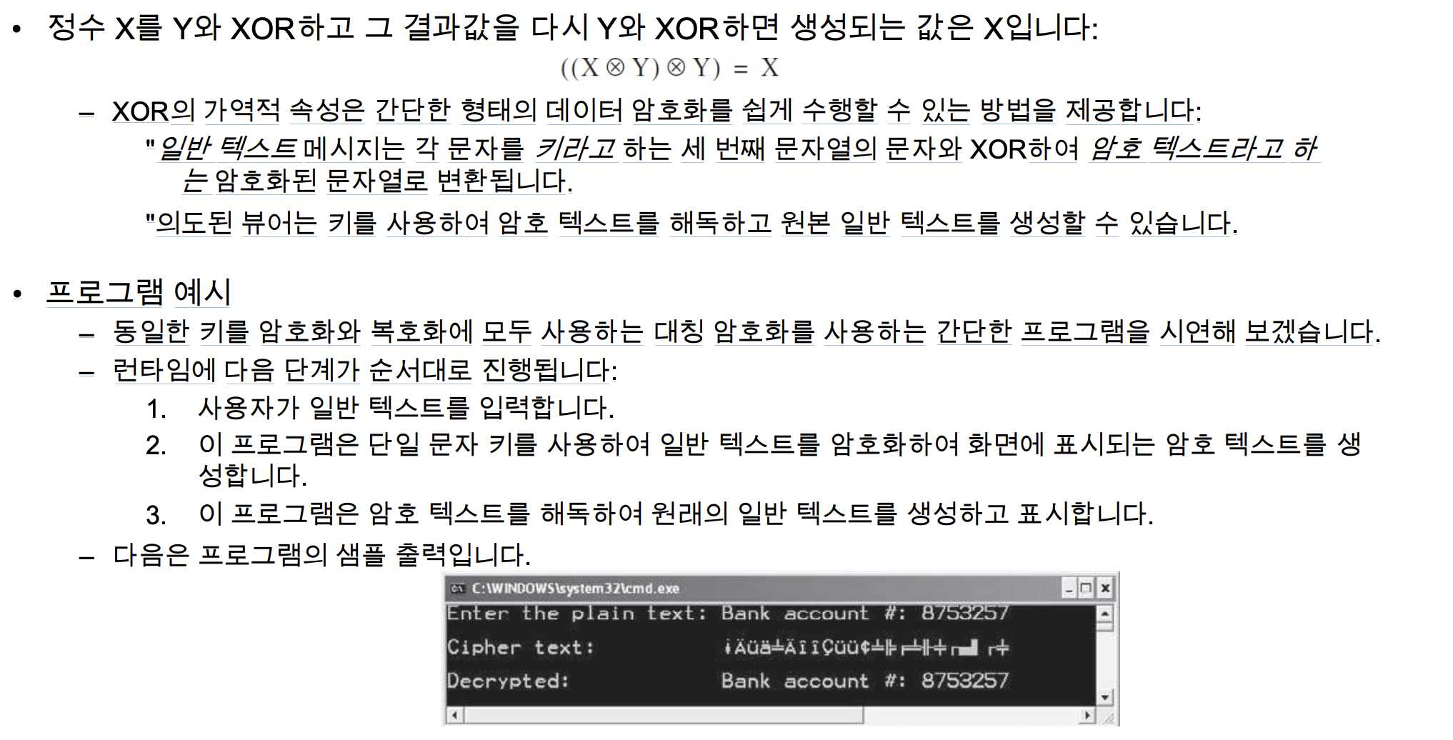 이거는 교수님 왈 별로 중요하지 않다고 생각하심..! XOR 할 때 암호화 알고리즘에서 사용할 수 있다는 엄청난 기술이라고 저자가 생각했다는데.. 교수님은.. 이건 좀.. 음… 굳이 이런말을 넣었을까.. 생각하심