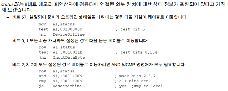 - 테스트 중인 비트의 값은 변경하고 싶지 않지만 CPU 상태 플래그의 값은 수정하고 싶은 경우가 종종 있습니 다.