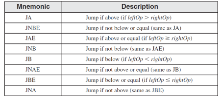- 부호 없는 피연산자의 비교를 기반으로 점프합니다. Jumps based on comparisons of unsigned operands