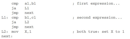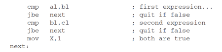 - CPU 상태 플래그중 하나가 영향을 받는 방식으로 bool-expression을 평가한다.