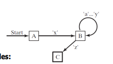 - 위 그림은 문자열이 x로 시작하고z 로 끝나야만 하는 상태이다.
