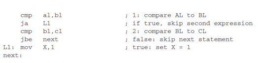 mov eax,op1 cmp eax,op2 jg A1 call Routine2 jmp A2 A1 : call Routine1 A2 :- 변수를 비교할 때 레지스터에 넣고 cmp하는 것 잊지 맙시다.