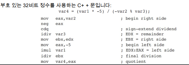 - 32비트의 경우에는 EAX로 피연산자가 지정된 상태이고 결과값은 EDX,EAX가 됩니다.