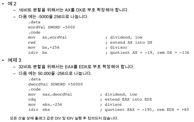 - 아까는 16비트 나눗셈을 하려면 피젯수가 32비트였어야 했었고 8비트 나눗셈을 하려면 16비트가 필요했었다.