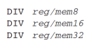 - 곱셈과 비슷하게 AX, DX:AX, EDX:EAX 를 레지스터나 메모리로 나눠준다.