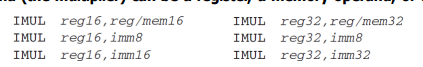 IMUL Dest operand1 operand2