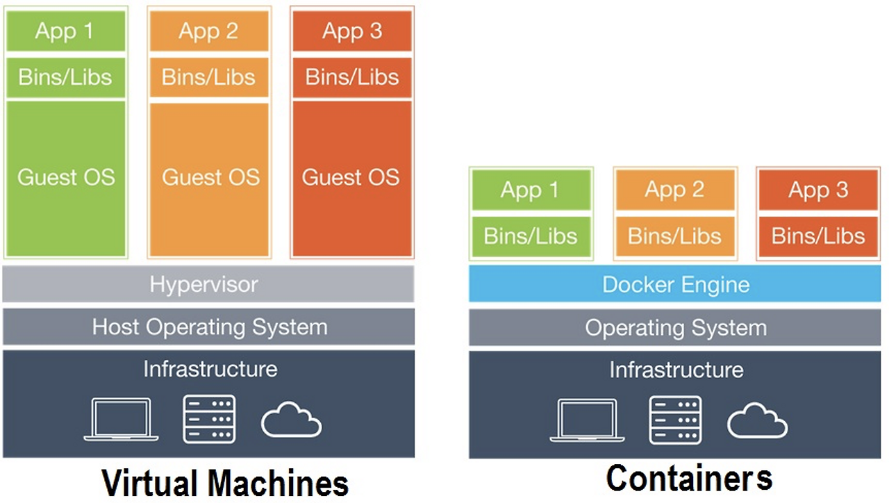 Docker의 Container는 Linux의 Container를 이용한 것이고, Linux의 Container에 여러 기능을 추가하여 어플리케이션을 Container로 조금 더 이용하기 쉽게 만들어 둔 것입니다.