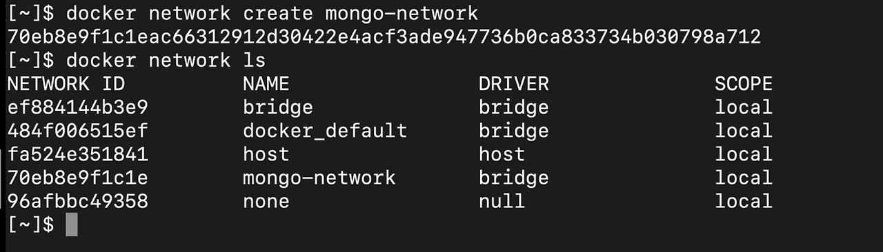 이제 저희는 mongo 와 mongo-express 라는 두개의 컨테이너 간에 통신이 필요해 mongo-network 를 만들어야 하는 상황이라고 가정해보겠습니다.