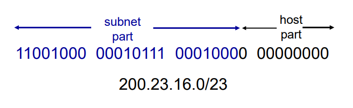 - 이 마스킹을 보면 23비트까지는 서브넷 주소로 하고 남은 부분을 호스트로 표현합니다.