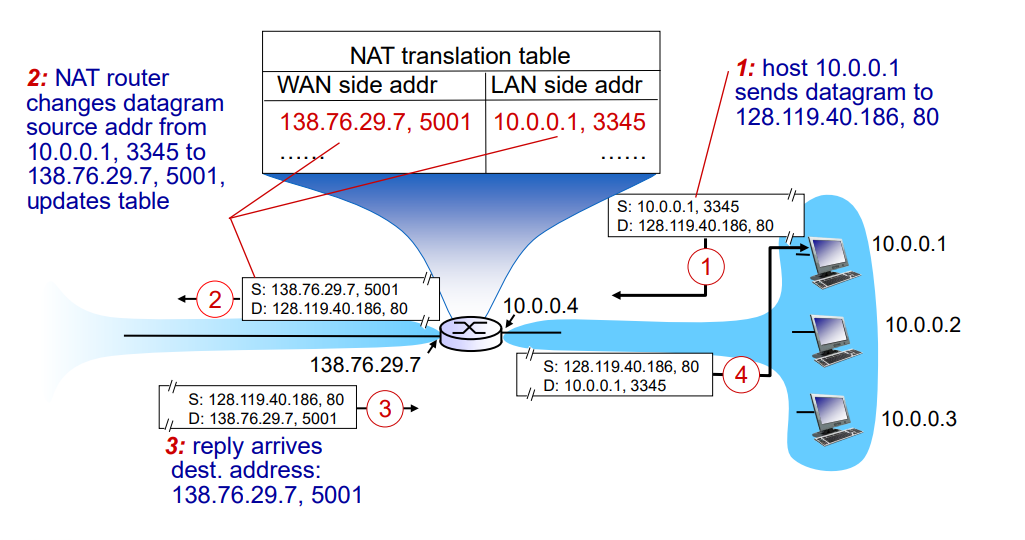 - NAT는 집에서 인터넷에 가입한 경우 IP주소를 10개정도 DHCP를 통해서 배정해줍니다.