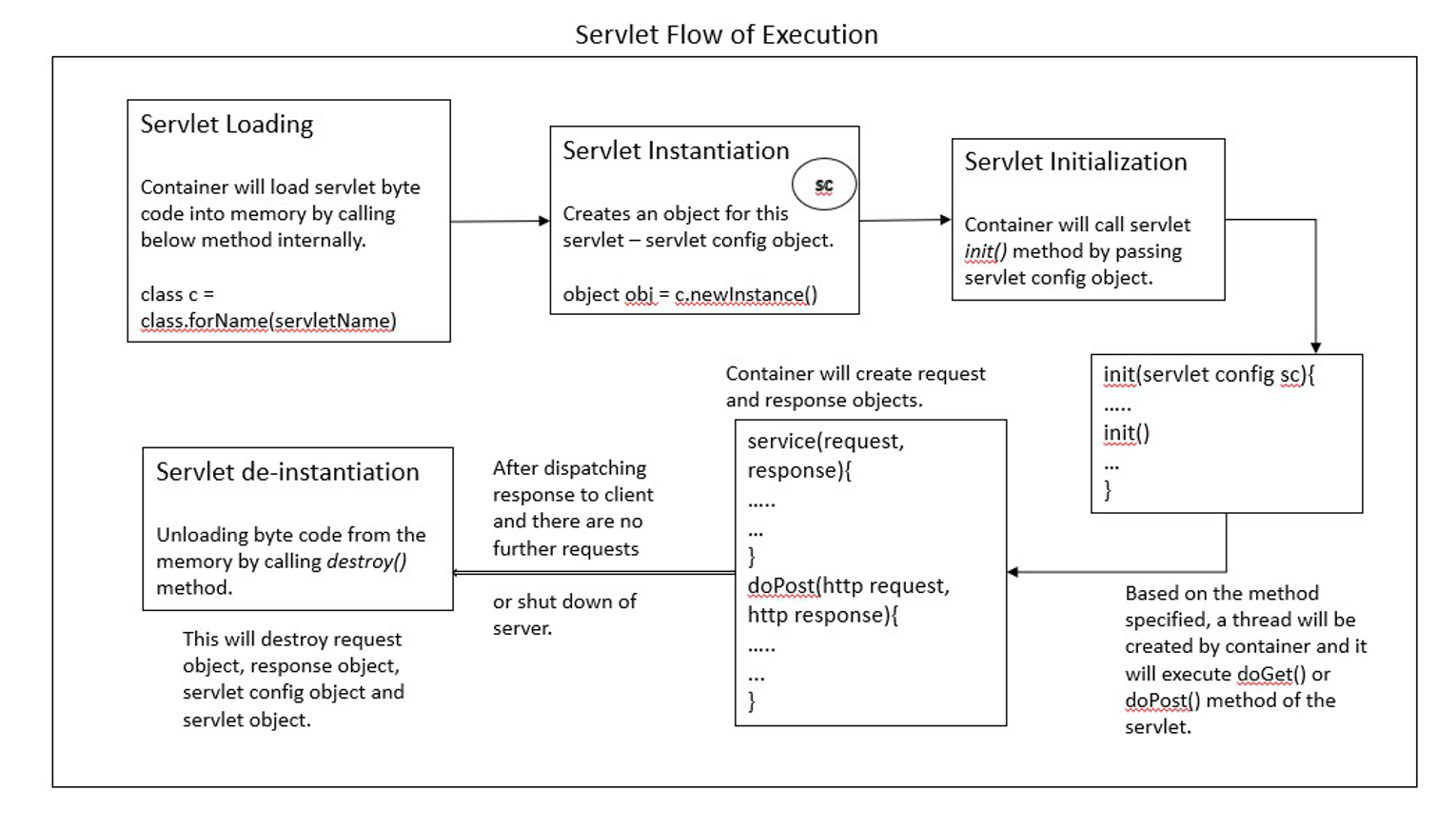 아래 내용은 https://www.geeksforgeeks.org/servlet-flow-of-execution/ 해당 링크의 글을 읽고 이해를 바탕으로 한국어로 정리한 글입니다.