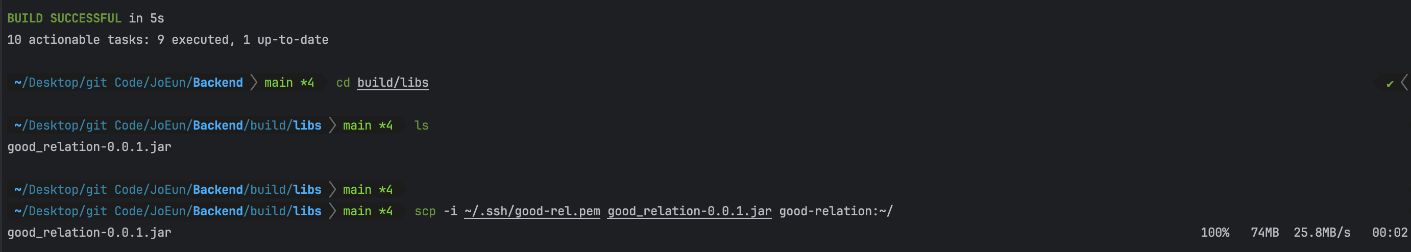 2. 로컬에서 백엔드 빌드 후 SCP로 파일 올리기.
