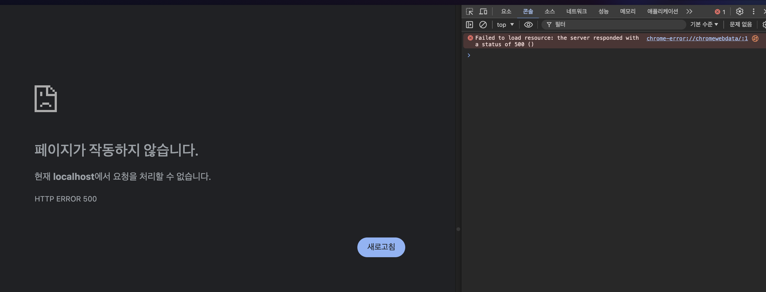 일단은 문제를 확인하기 위해 로컬에서 프론트 코드를 돌려봤다. 음 역시 에러가 나는군.