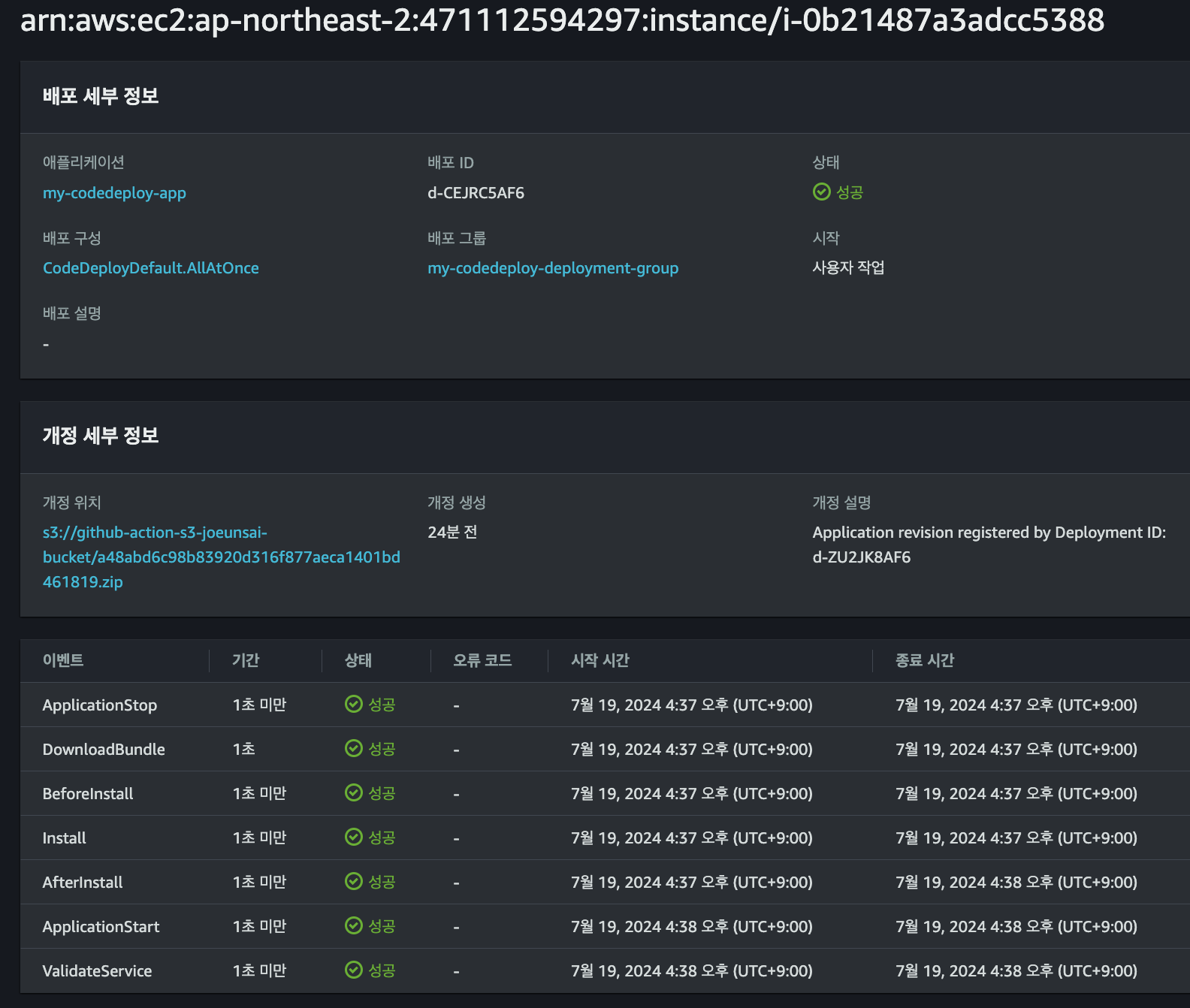 # (6) S3 버킷에 있는 파일을 대상으로 CodeDeploy 실행