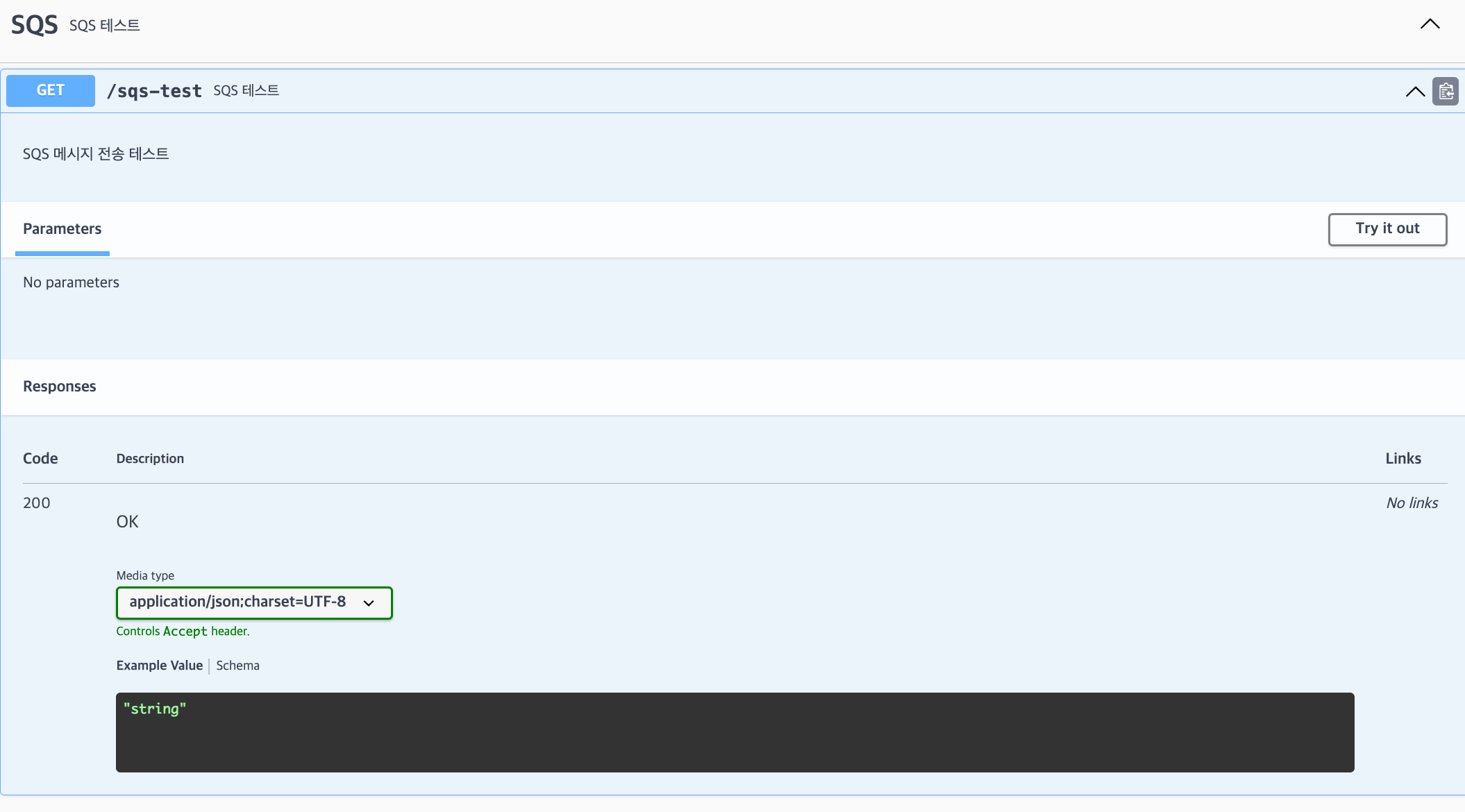 @Tag(name = "SQS", description = "SQS 테스트")