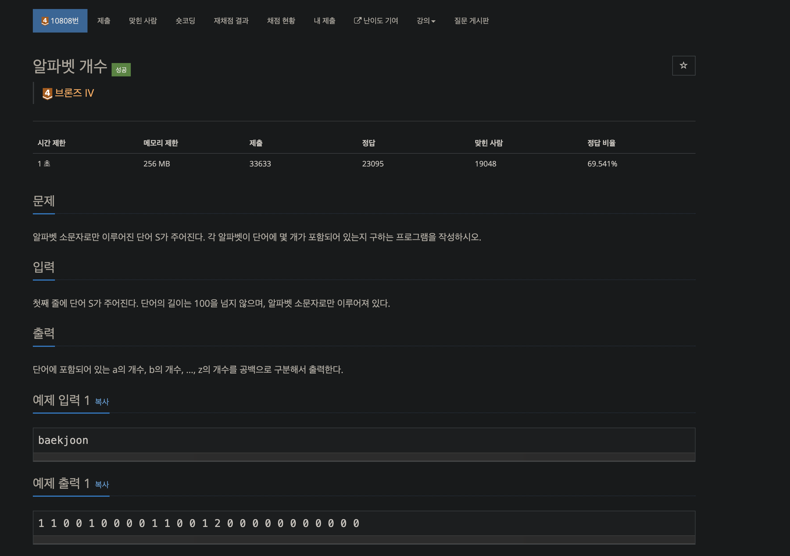 - 문자열이 알파벳 소문자가 확정 되어있기 때문에 26 크기의 char 형 배열을 이용해 그와 관련된 값이 들어오면 값을 더해주는 방식을 사용을 했다.