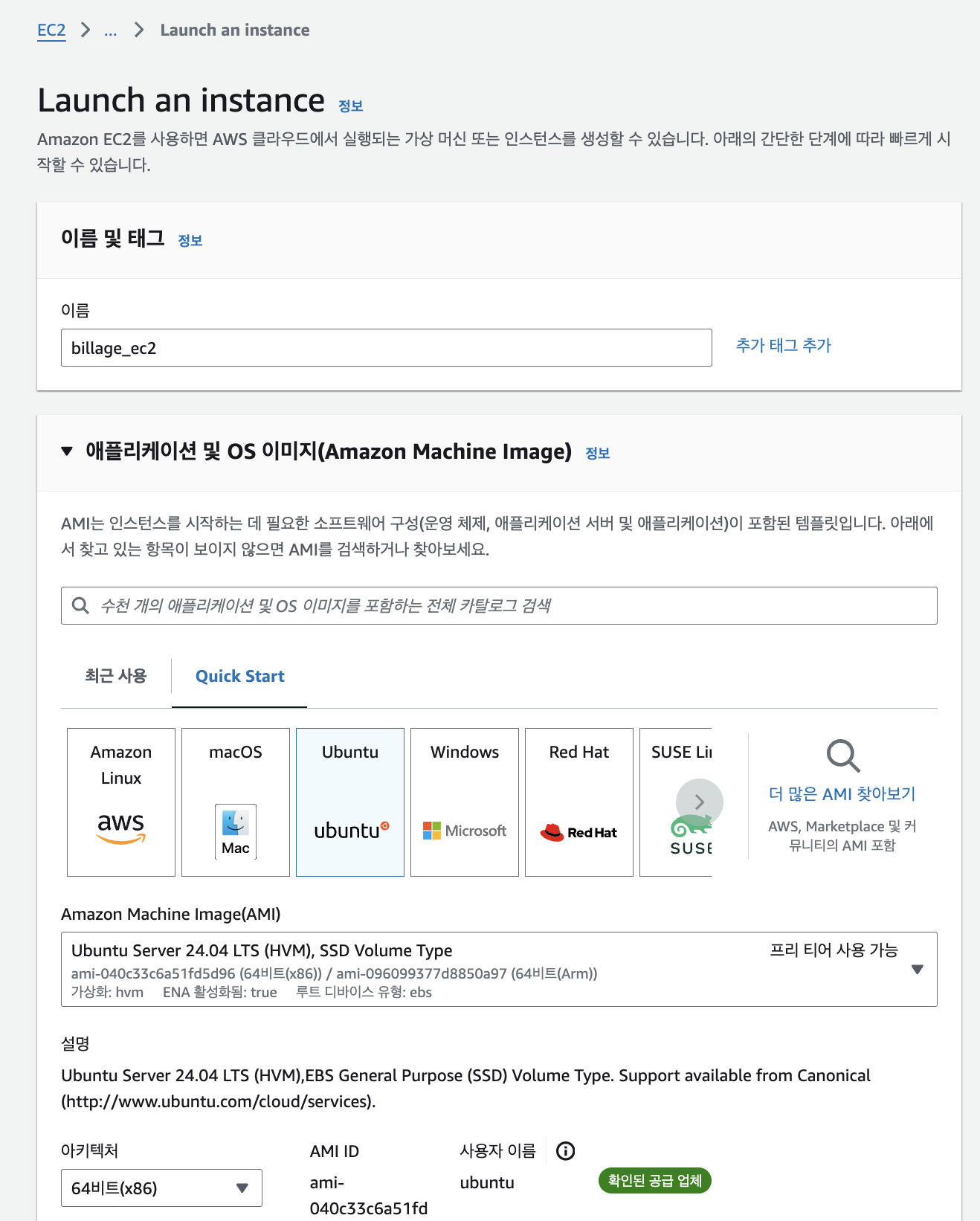 사실 두개 다 상관없지만 이 게시물에서는 ubuntu로 만들어준다. 명령어가 더 익숙하기 때문이다. 만약 amazon Linux 명령어가 더 편하거나 다른 이유가 있다면 amazon Linux를 사용해도 된다.