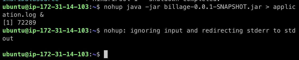nohup java -jar billage-0.0.1-SNAPSHOT.jar > application.log &