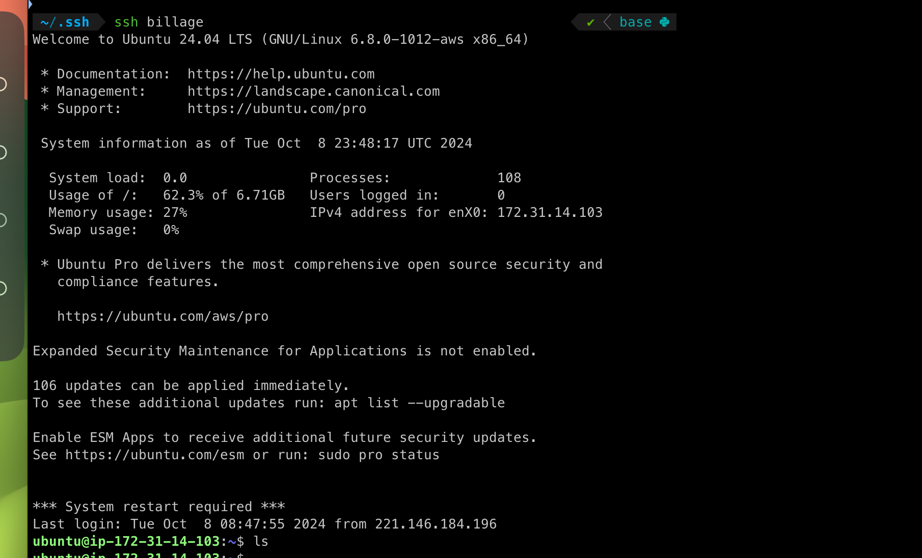 2.4 ssh 연결 성공
