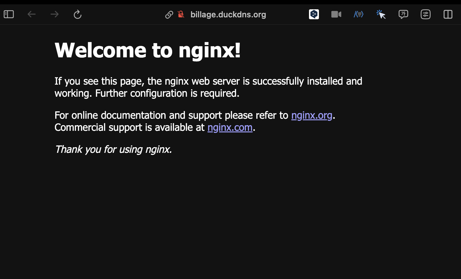 사이트는 duck DNS로 무료로 도메인을 제공한다.