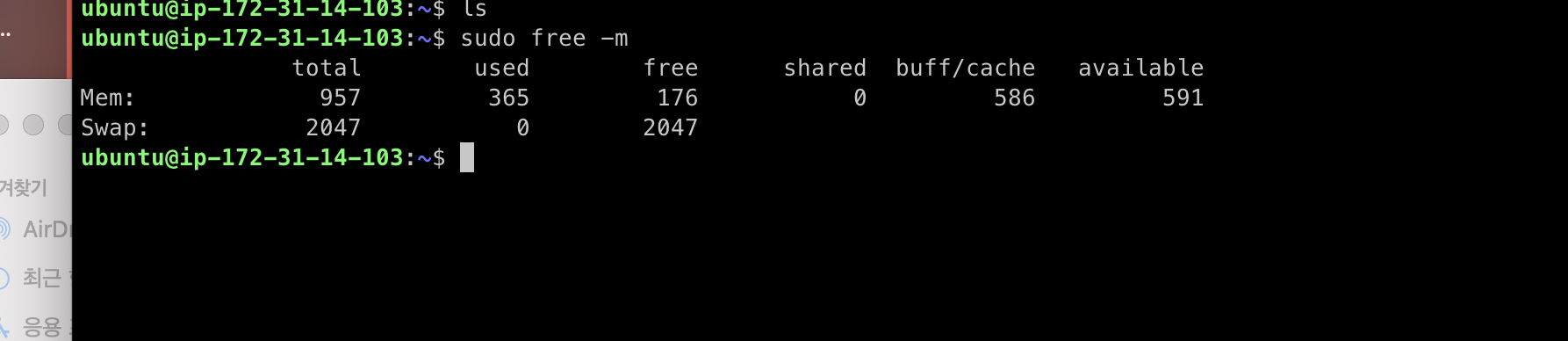sudo rm /swapfile # swap 파일 삭제
