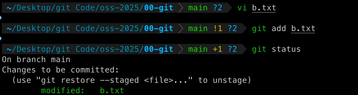 git status # a.txt = Staged
