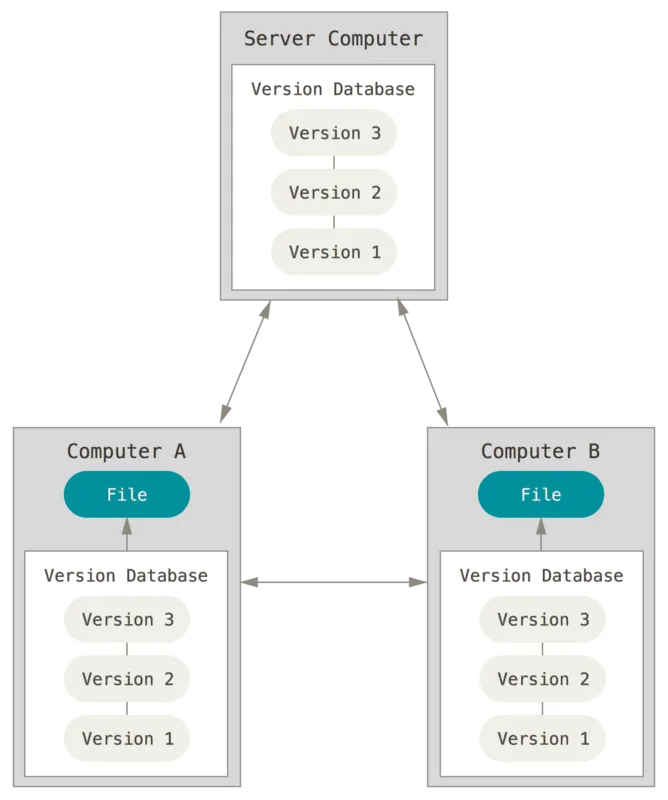 프로젝트를 진행하다 보면 다른 개발자와 함께 작업해야 하는 경우가 많다. 이럴 때 생기는 문제를 해결하기 위해 CVCS(중앙집중식 VCS)가 개발됐다. CVS, Subversion, Perforce 같은 시스템은 파일을 관리하는 서버가 별도로 있고 클라이언트가 중앙 서버에서 파일을 받아서 사용(Checkout)한다. 수년 동안 이러한 시스템들이 많은 사랑을 받았다.
