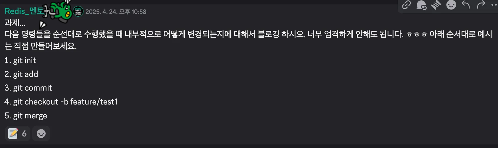 | 커밋 메시지 등 덮어쓰기 | git commit --amend | 최신 커밋 교체 |