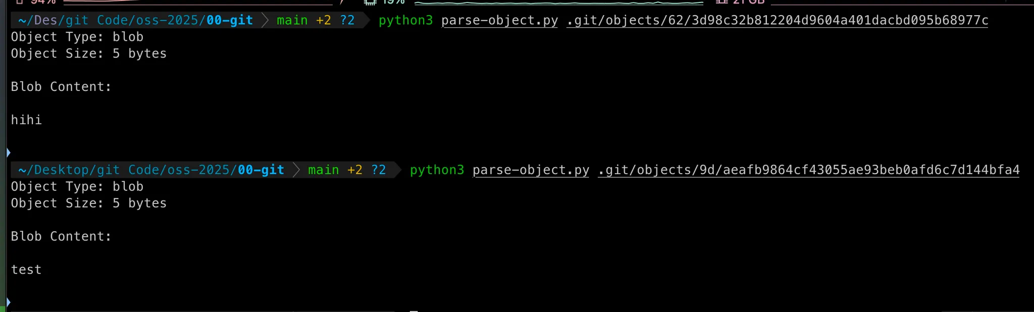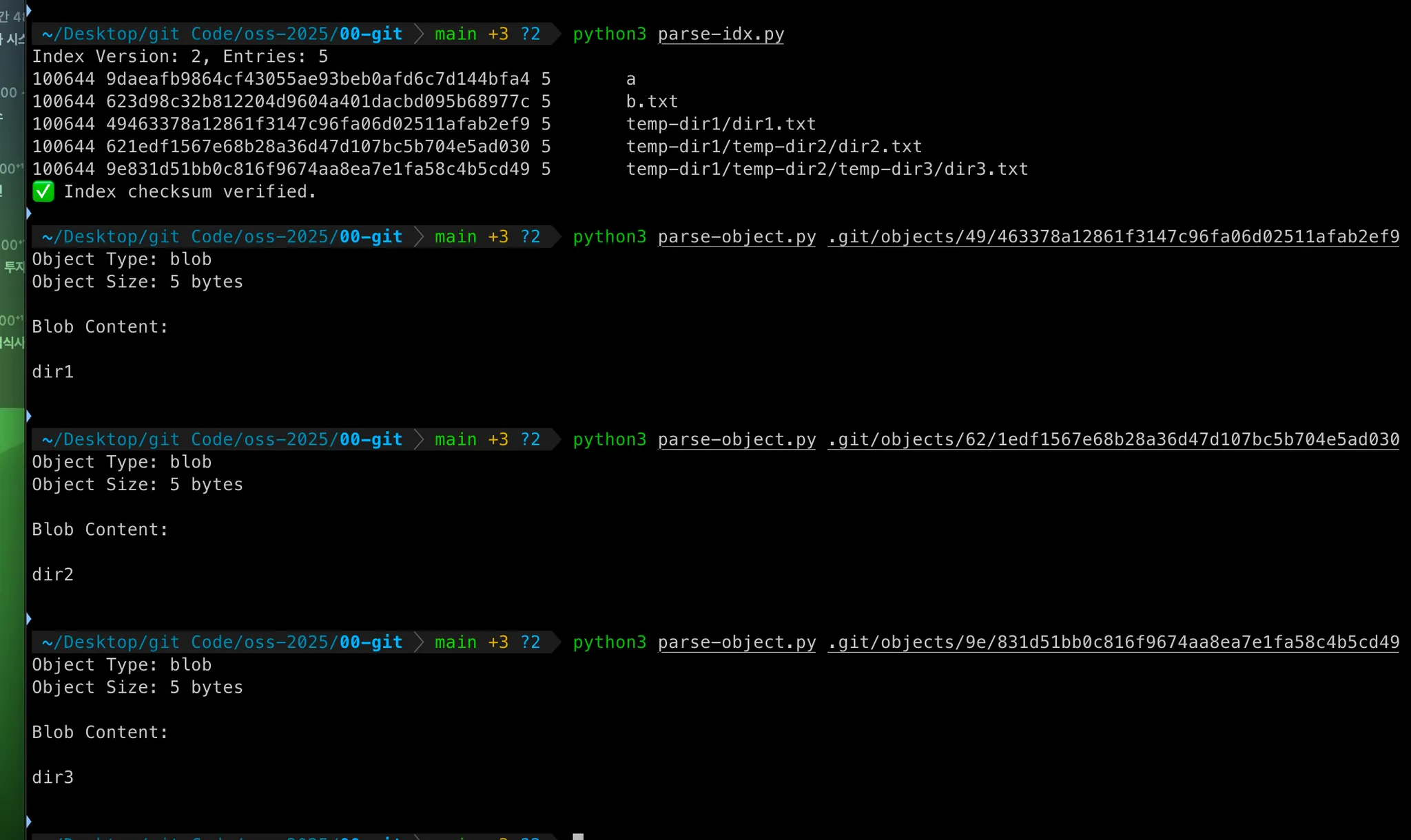 object 폴더는 9d 62 로 2개의 blob object 밖에 없었는데 2개의 오브젝트가 더 생긴 걸 볼 수가 있다.
