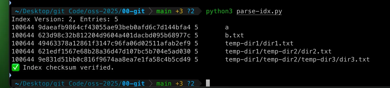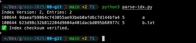 Git에서는 staging area 를 .git/index 에서 관리하기 때문에 이전에 없던 index 파일도 생겼다.