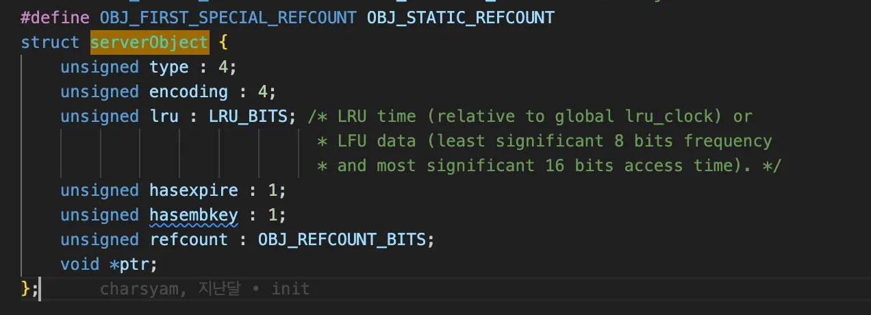 여기서 redisObject가 나오는데 레디스는 redisObject라는 구조체로 데이터를 표현합니다. (Valkey에선 serverObject